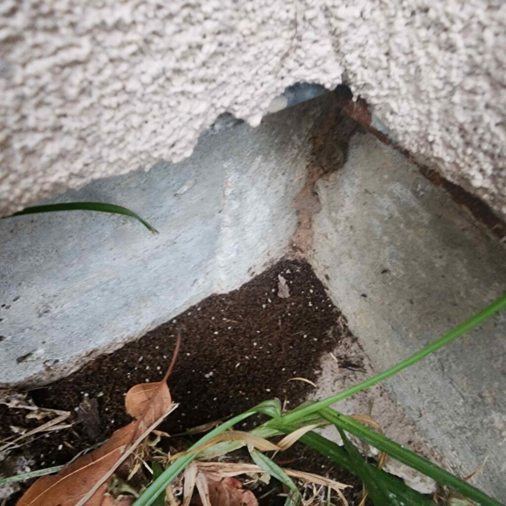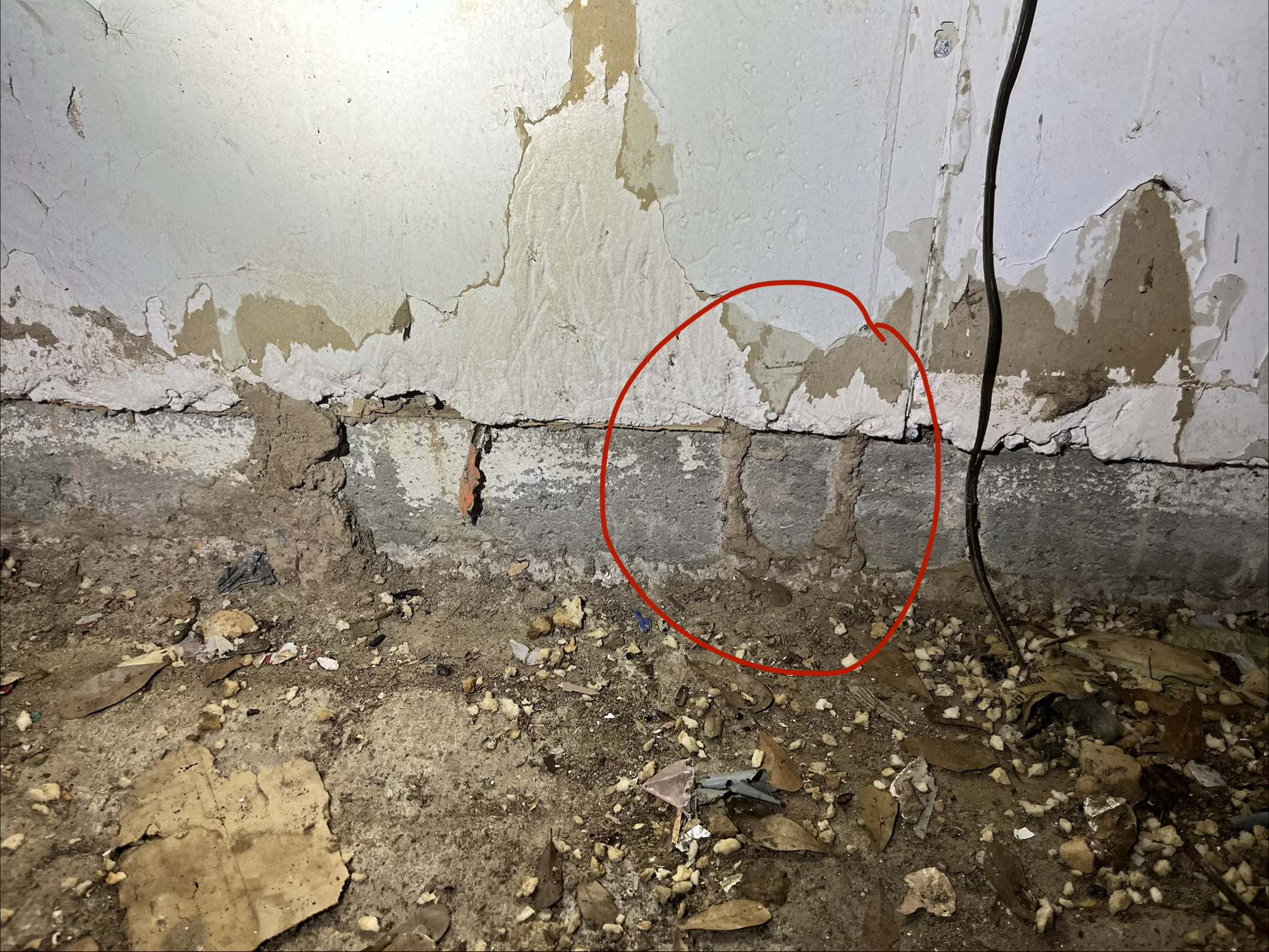 - Mud tubes are detected entering through wall voids or plumbing penetrations